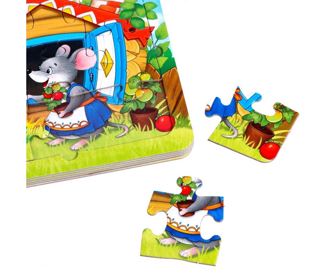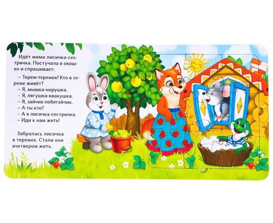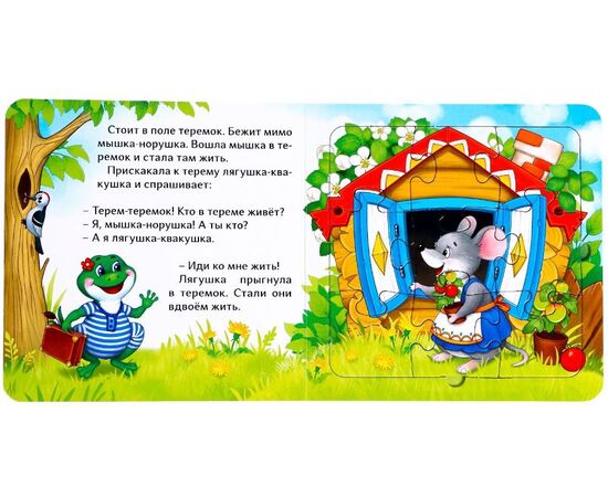 В этой чудной книге малыша ждёт не только русская народная сказка про теремок, но и пазлы. Собирайте их вместе с малышом, чтобы потренировать мелкую моторику и привить любовь к чтению.