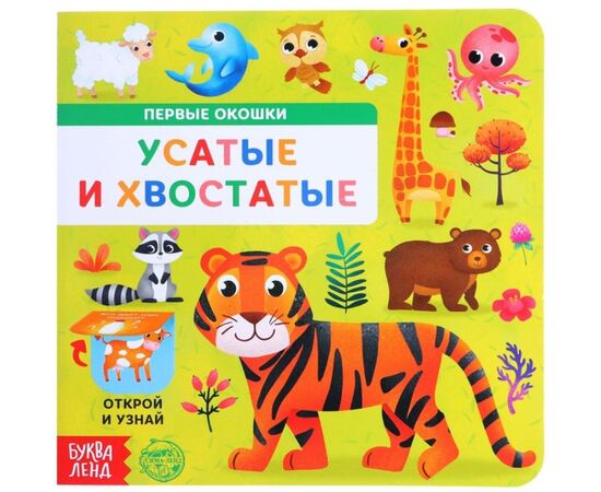 Книга картонная с окошками "Усатые и хвостатые", 10 страниц
