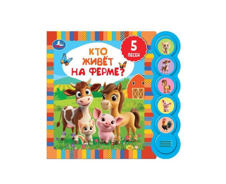 Книга музыкальная "Кто живет на ферме?", 5 кнопок