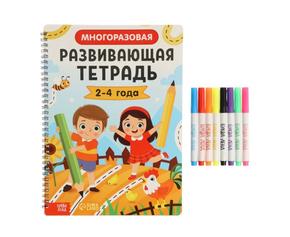 Книга с маркером "Многоразовая развивающая тетрадь", 44 страницы