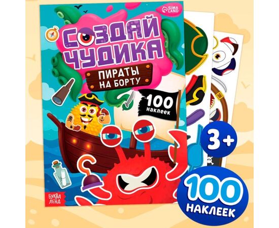 Книга с наклейками "Создай чудика. Пираты на борту" 100 наклеек