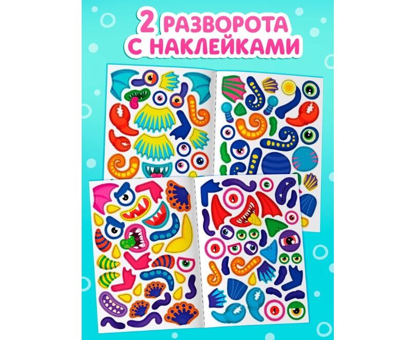 Книга с наклейками "Создай чудика. Подводный мир" 129 наклеек