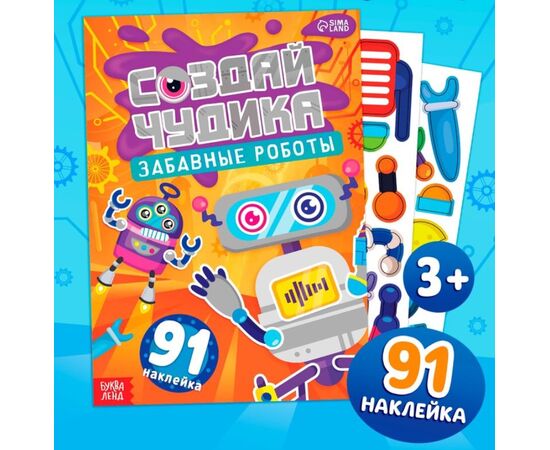 Книга с наклейками "Создай чудика. Забавные роботы" 91 наклейка