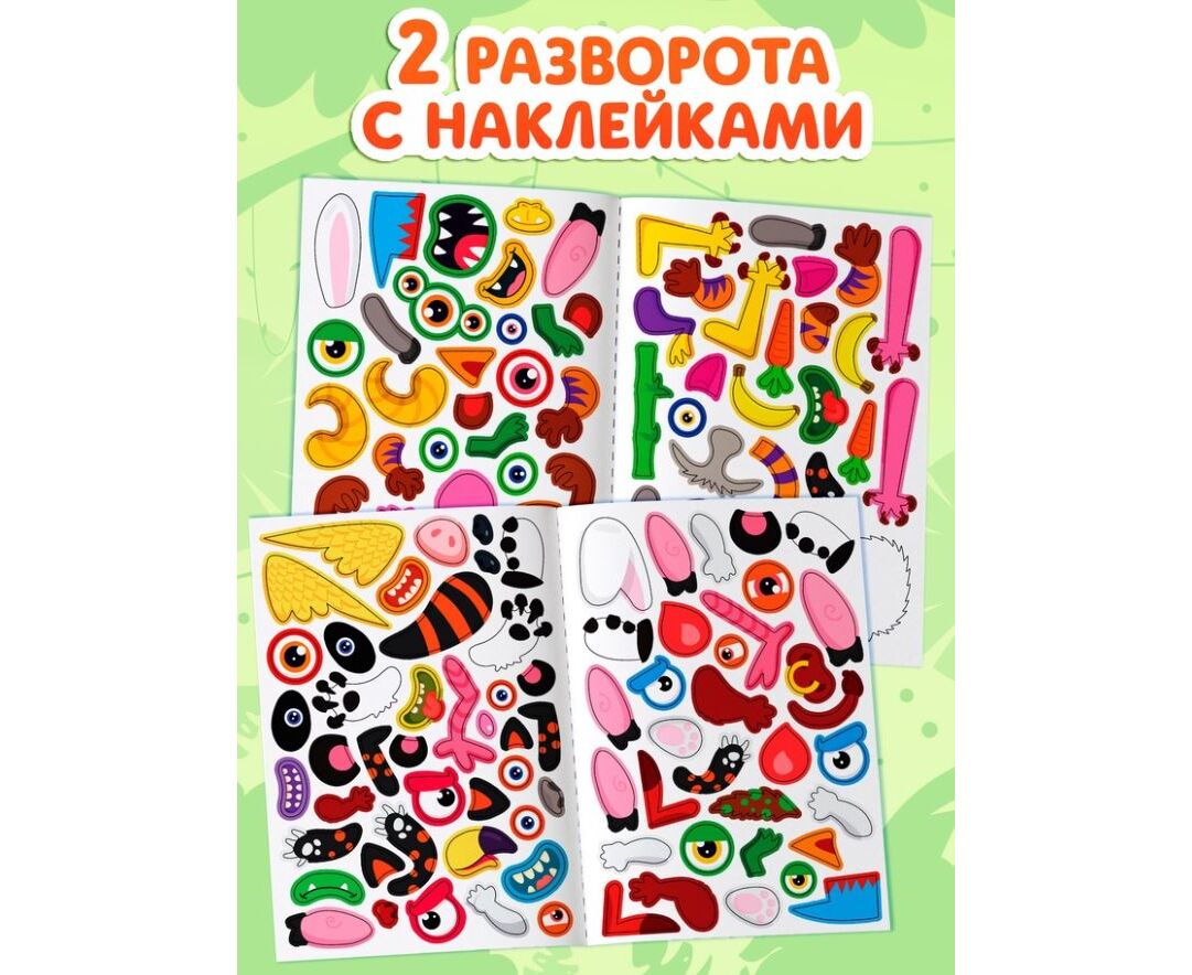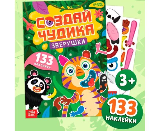 Книга с наклейками "Создай чудика. Зверушки" 133 наклейки