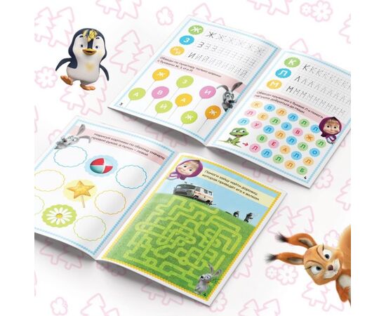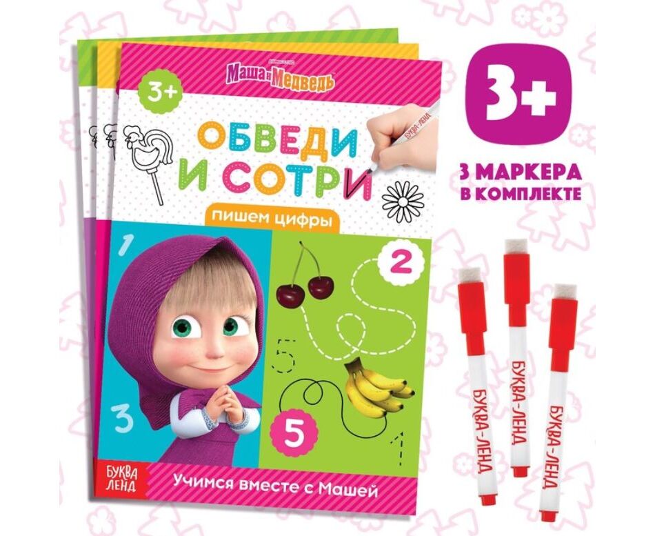 Книги "Маша и Медведь. Обведи и сотри", 3 книги и 3 маркера