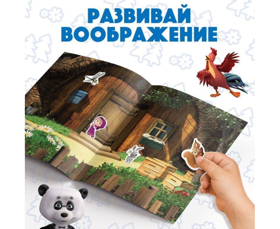 Книжка с многоразовыми наклейками "В гостях у Медведя. Маша и Медведь"