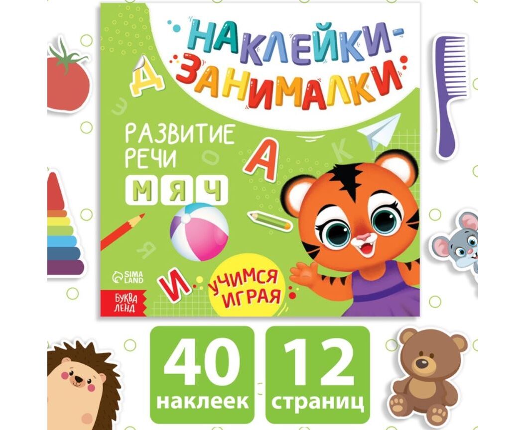 Книжка с наклейками "Развитие речи" , 12 страниц