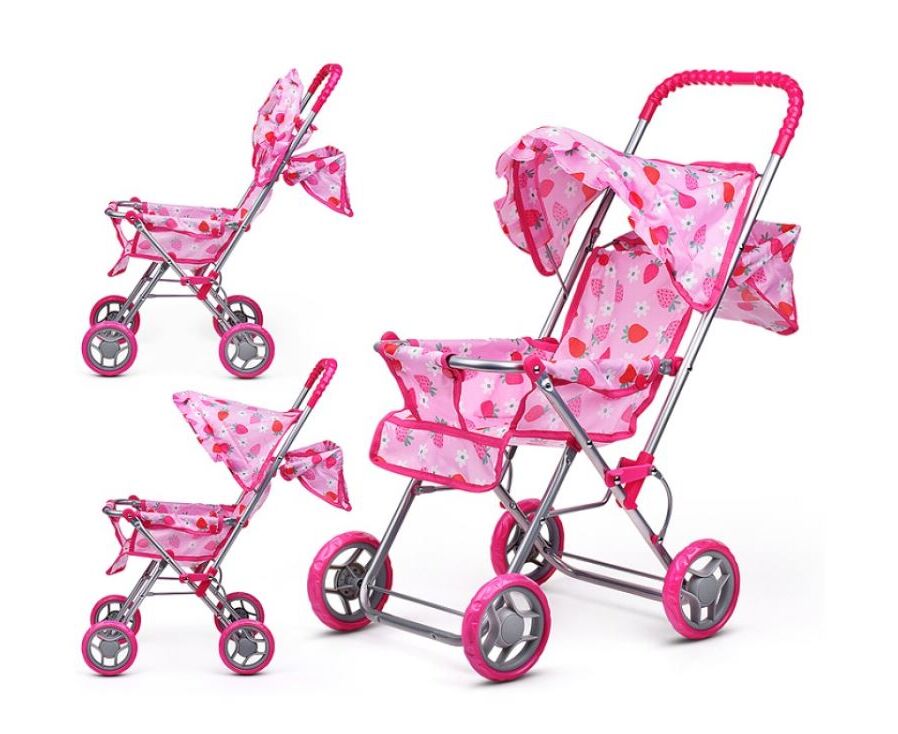 Коляска прогулочная складная "Клубнички на розовом", с тентом