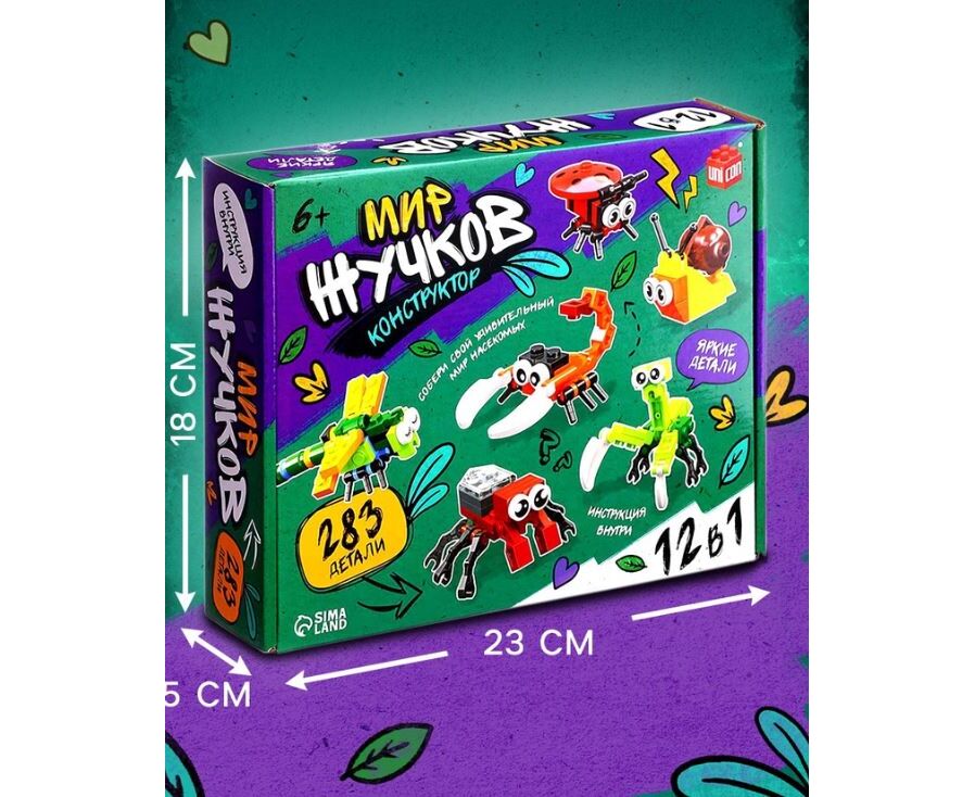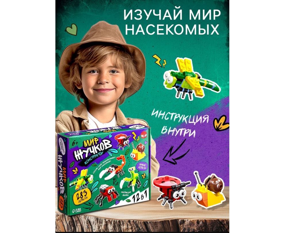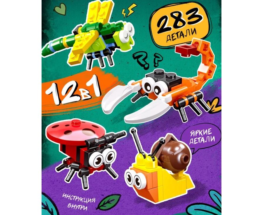 Конструктор 12 в 1 "Мир жучков", 283 детали
