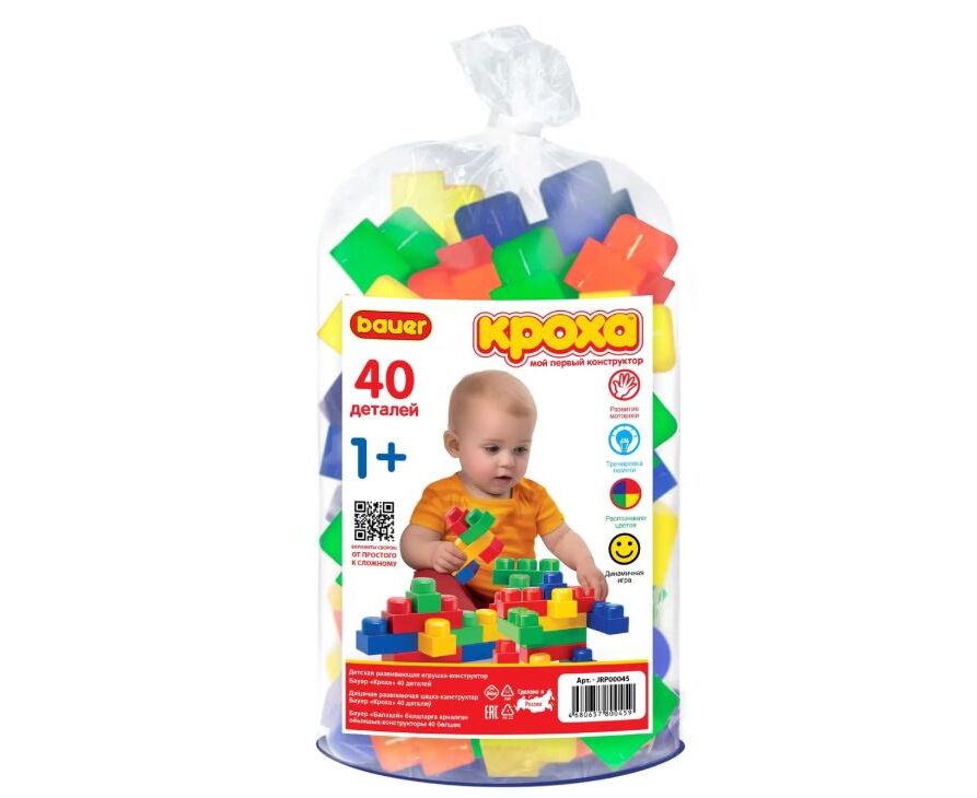 Конструктор блочный в мешке "Кроха", 40 деталей