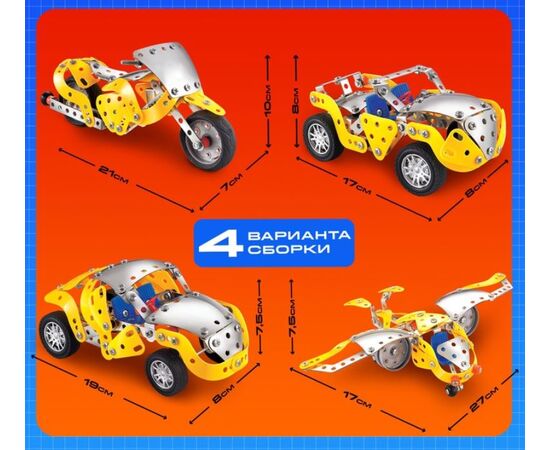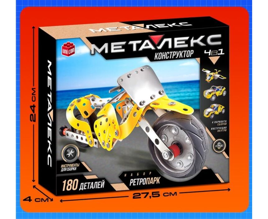 Конструктор металлический 4 в 1 "Ретропарк", 180 деталей