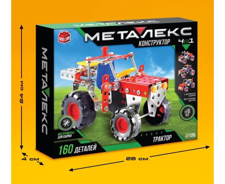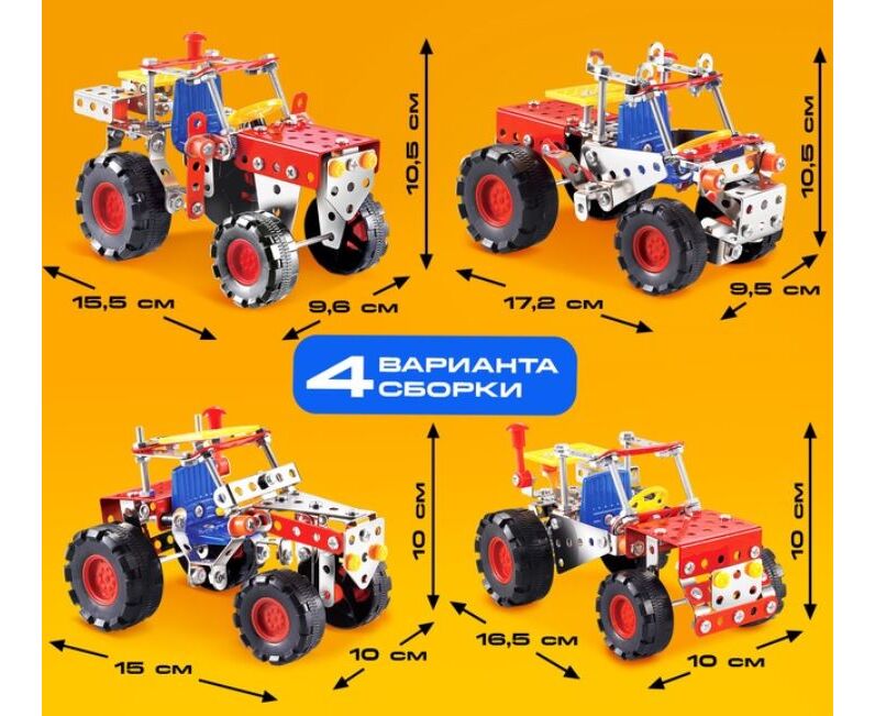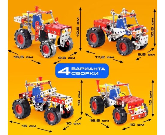 Конструктор металлический 4 в 1 "Трактор", 160 деталей