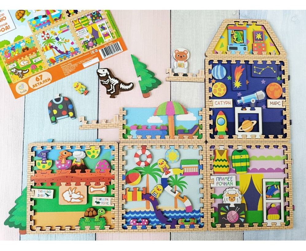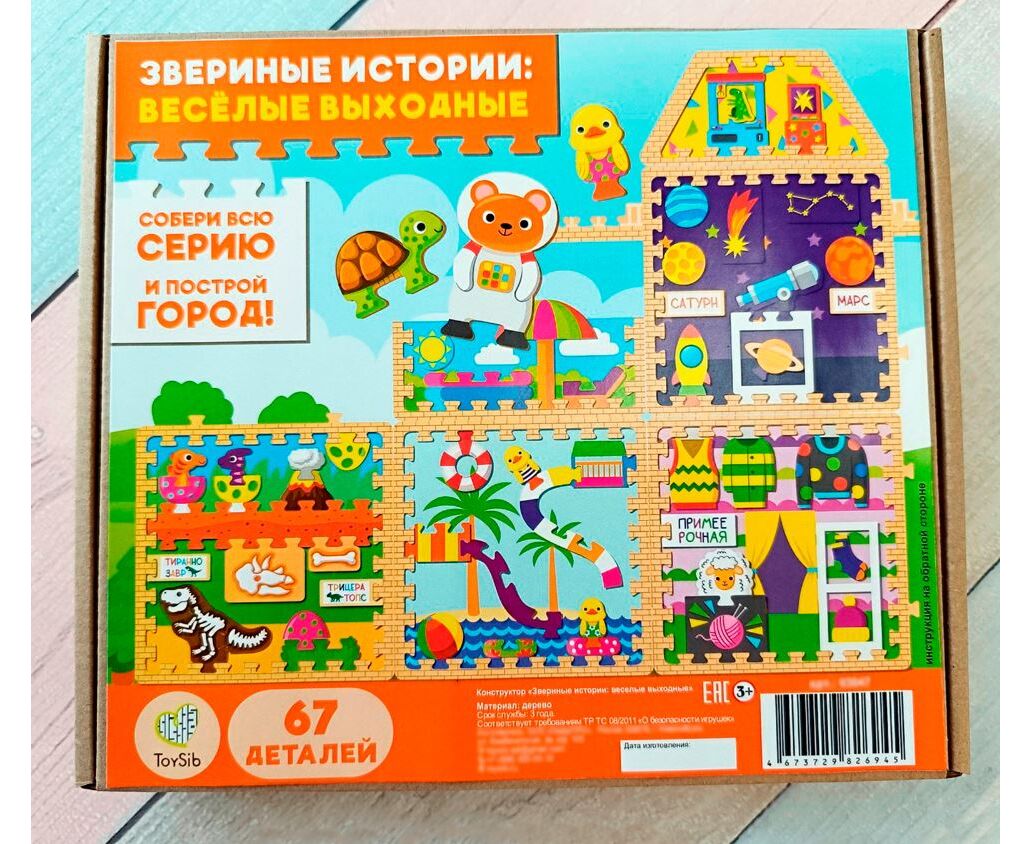Конструктор-пазл из дерева "Звериные истории: весёлые выходные", 67 деталей