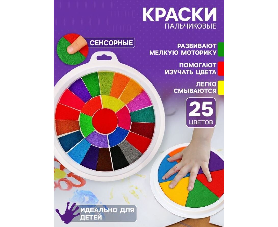 Краски пальчиковые на водной основе с губкой, 25 цветов