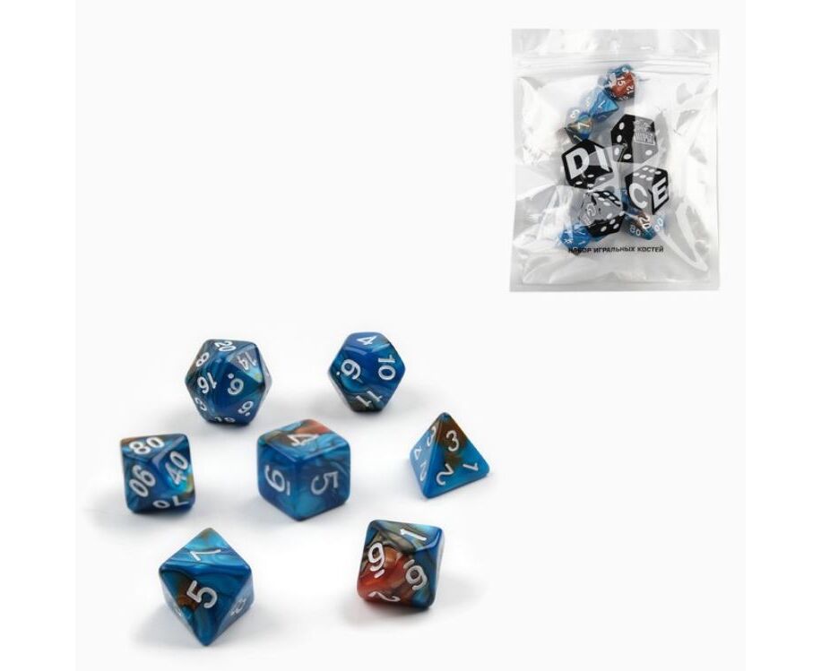 Кубики-дайсы синий, 7 штук
