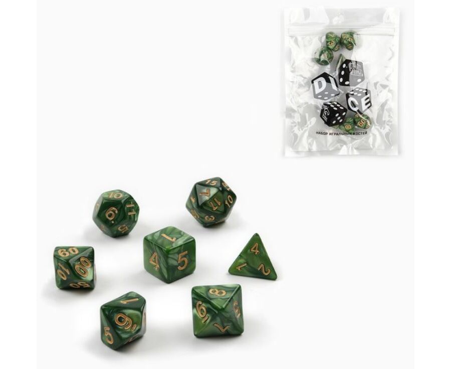 Кубики-дайсы темно-зеленые, 7 штук
