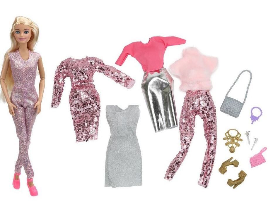 Кукла 29 см "София в комбинезоне" + 4 комплекта одежды
