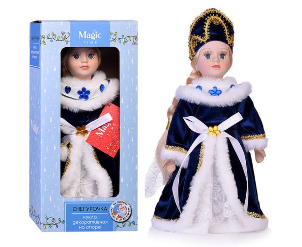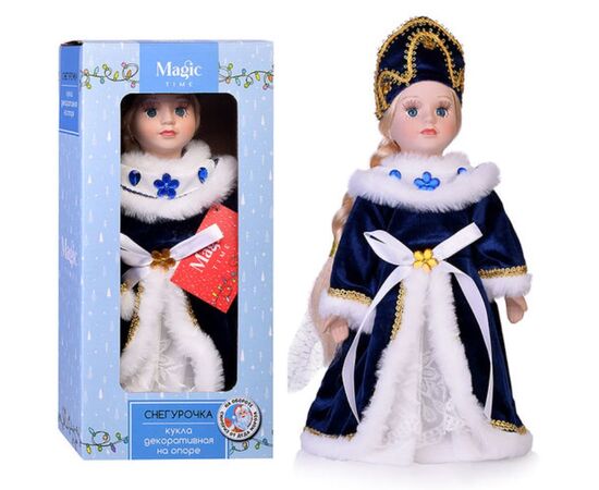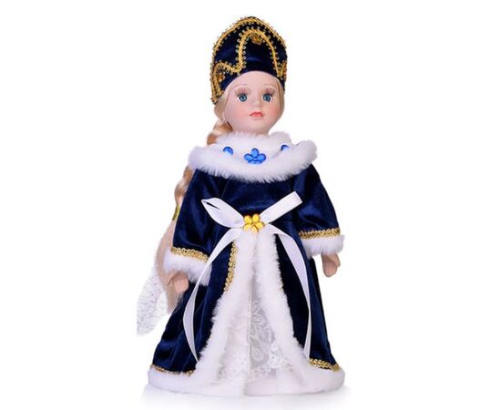 Кукла декоративная на подставке "Снегурочка бело-синем наряде с мехом"
