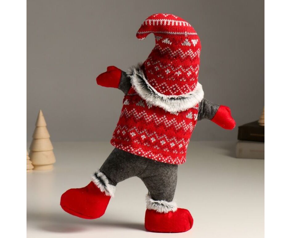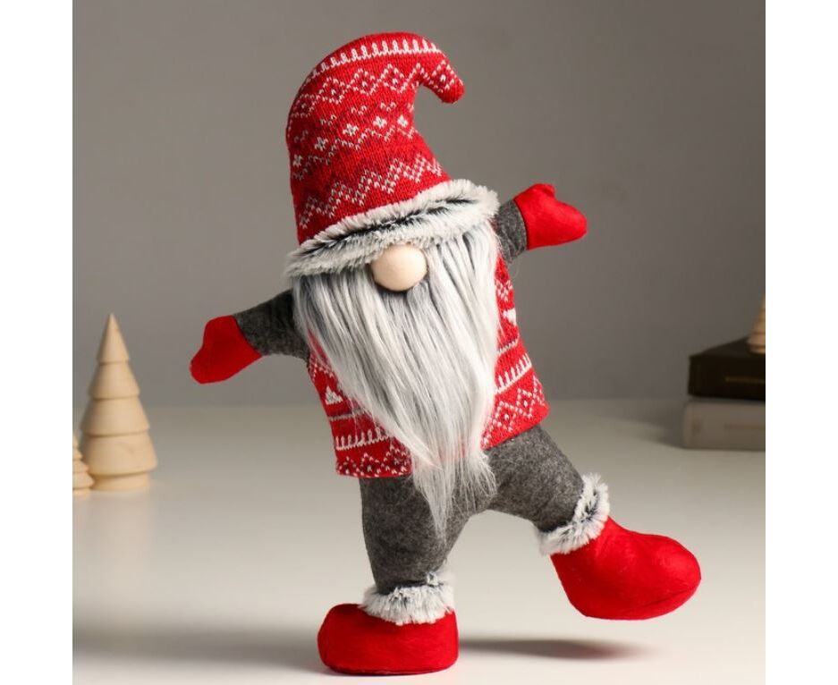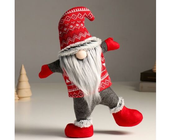 Кукла интерьерная "Дед Мороз в вязаном колпаке-акробат"