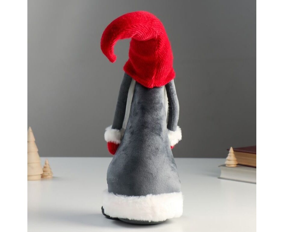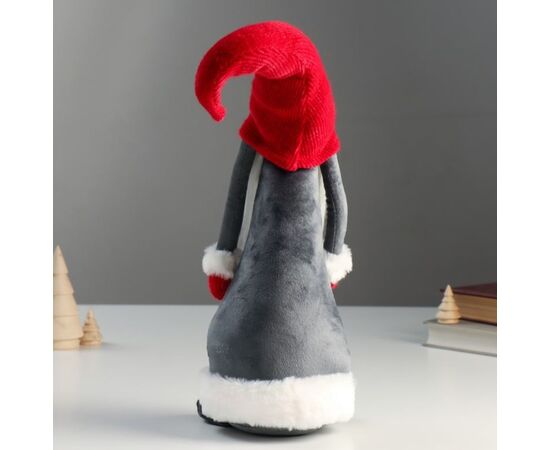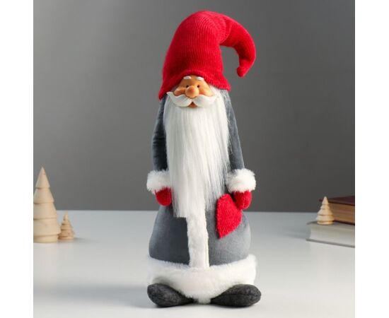 Кукла интерьерная "Дедушка Мороз в серой шубе и красном колпаке-шапке"