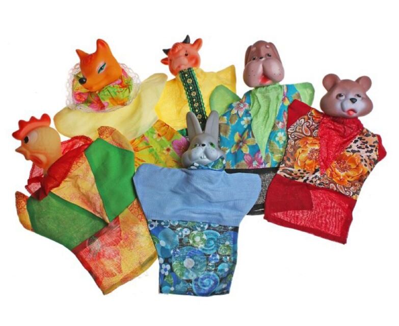 Подарочный набор игрушек-рукавичек для домашнего кукольного театра. В коробке Вы найдете: зайца, лису, собаку, быка, медведя, петуха.