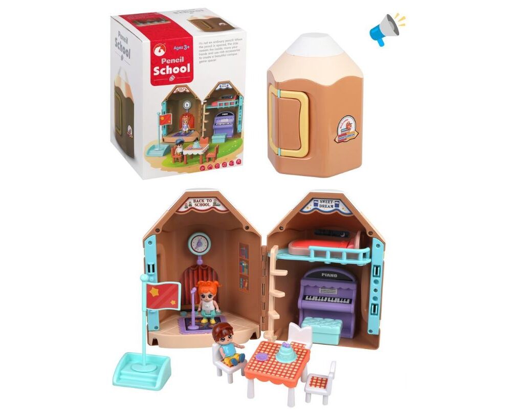 Это не просто карандаш, а самый настоящий кукольный домик! Внутри него и спальня, и сцена для школьных выступлений, а еще место для игры на фортепиано. «Карандаш» открывается, образуя единое пространство для игры.