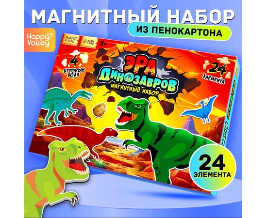 Магнитная игра "Эра динозавров", 4 игровых поля, 24 элемента