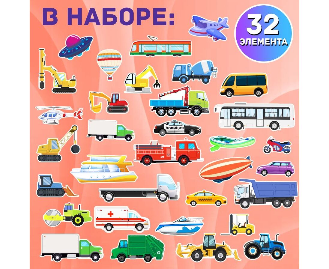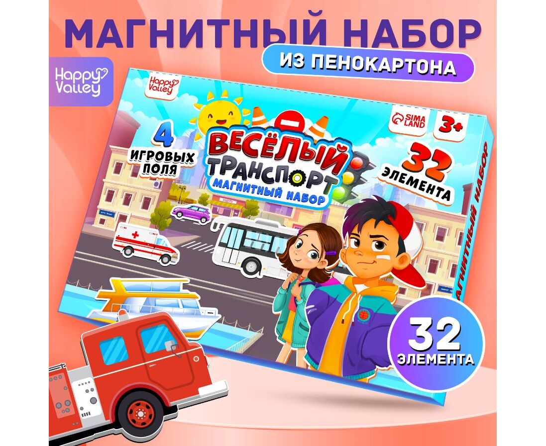 Магнитная игра "Весёлый транспорт", 4 игровых поля, 32 элемента
