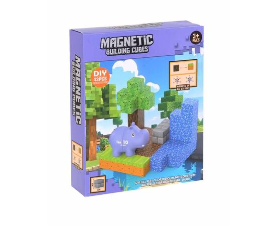 Магнитный конструктор "Сафари", 42 кубика + фигурка бегемота