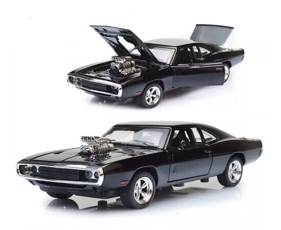 Машина металлическая "Dodge Changer", цвет лаковый черный, со звуком, светом, 20 см
