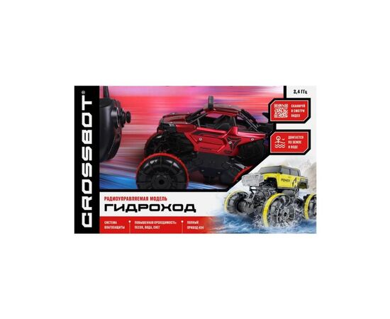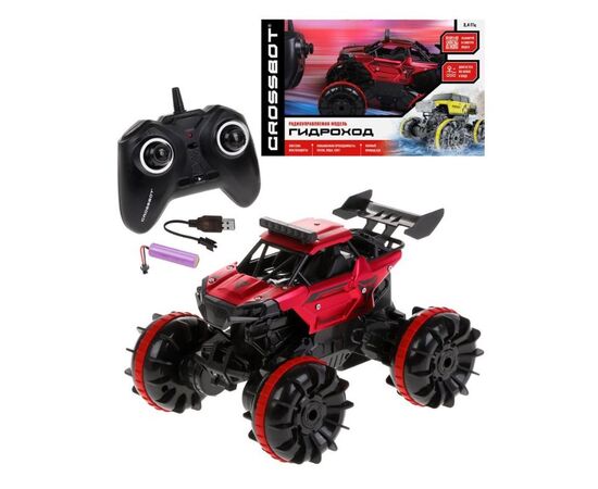 Машина на радиоуправлении «Гидроход» способна двигаться по земле и воде. Отличается повышенной проходимостью по песку, воде и снегу. Обладает водонепроницаемым корпусом и специальными колесами с лопастями.