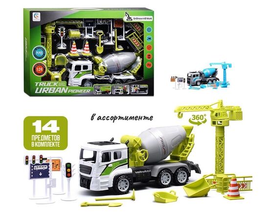 Машина с дорожными знаками "Бетономешалка", 14 предметов