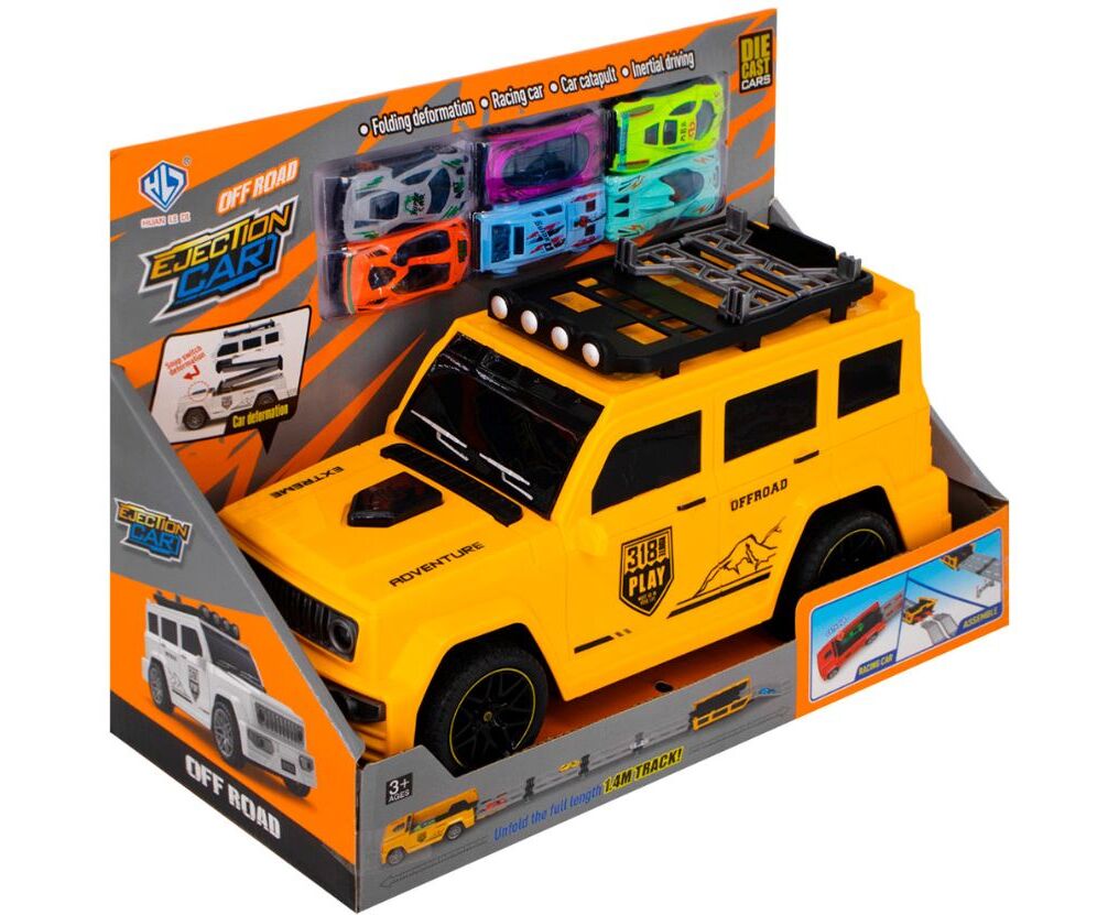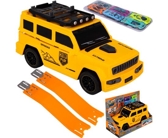 Машина трансформируется в трассу + металлические машинки, цвет желтый