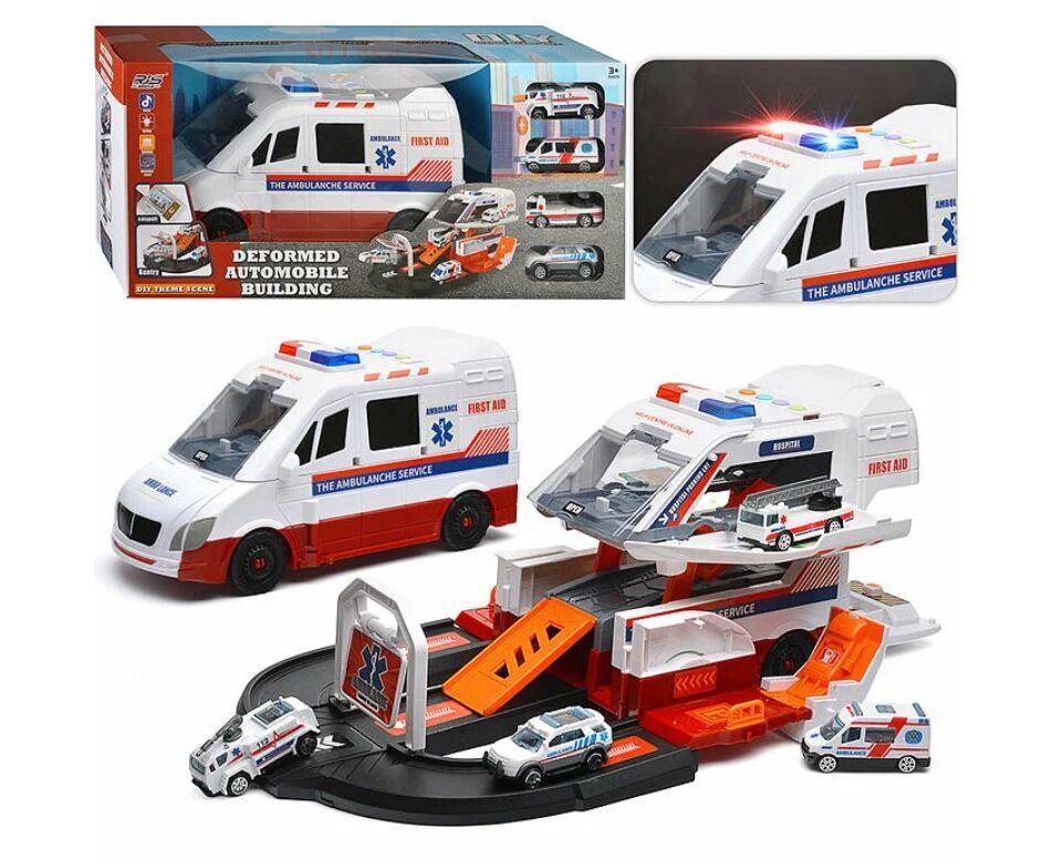 Машина - трек "Скорая помощь", со светом, звуком, 4 машинки