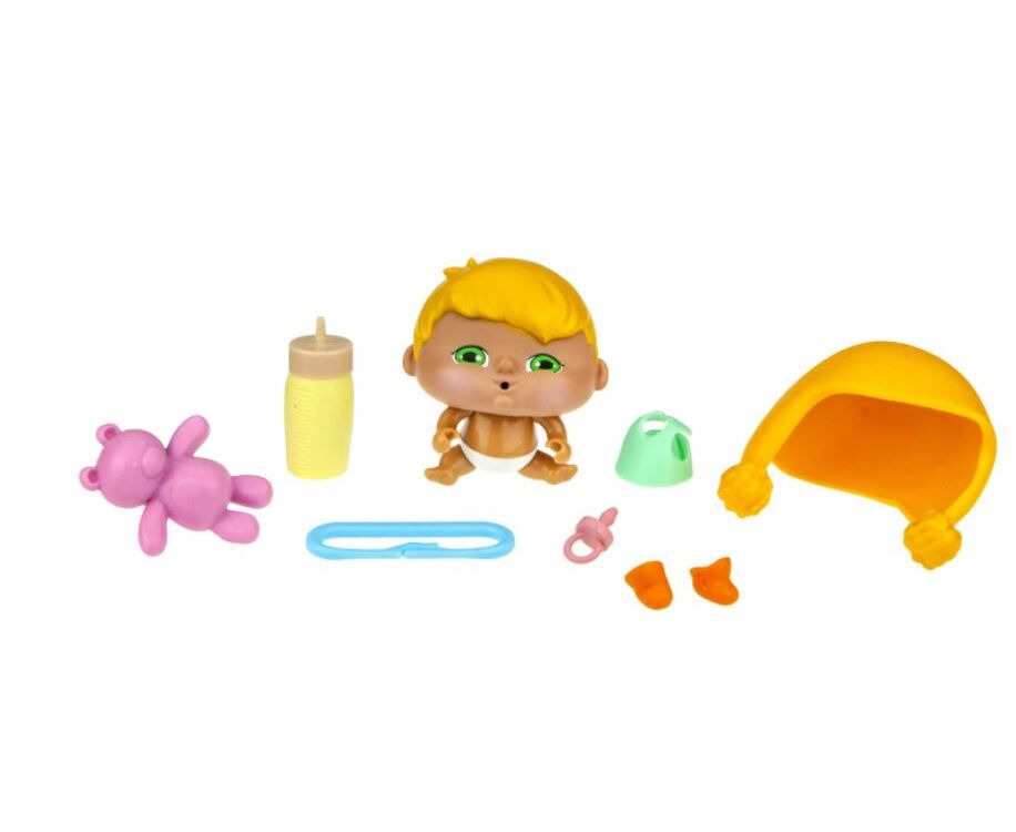 В каждом стручке находится: пупсик, одежда, игрушка для пупсика, пустышка, гид коллекционера, свидетельство о рождении.