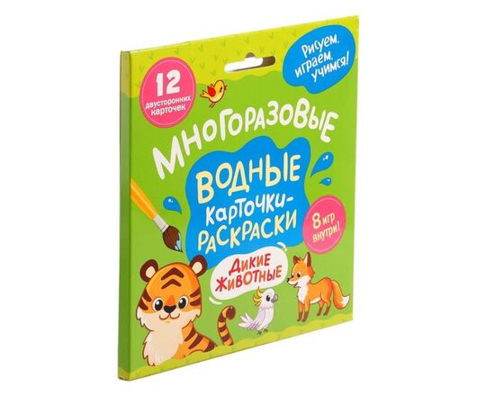 Многоразовые водные карточки-раскраски "Дикие животные", 12 шт