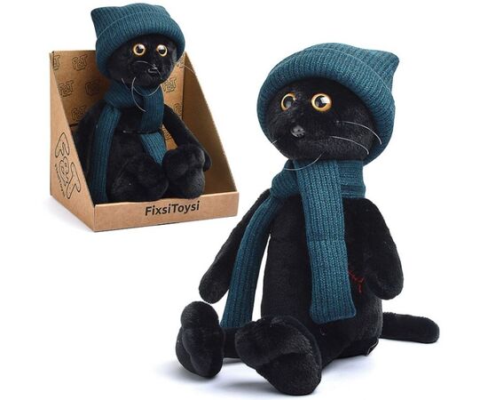 Мягкая игрушка "Черный кот Марсель в шапке и шарфе"