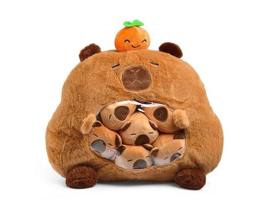 Мягкая игрушка "Капибара с малышами и мандаринкой"