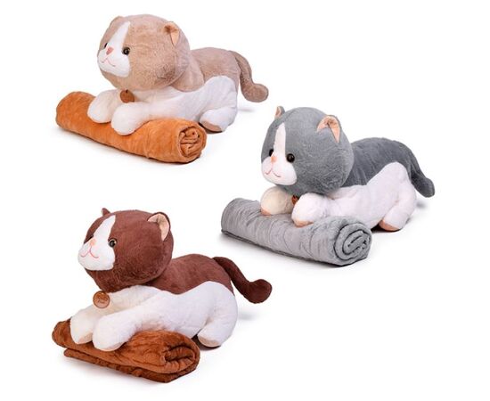 Мягкая игрушка "Кошечка Карамелька", с пледом, цвета в ассортименте