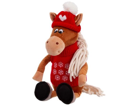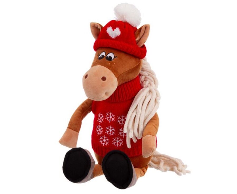 Мягкая игрушка "Лошадка Роза в шапочке и свитере", 25 см