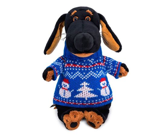 Мягкая игрушка "Собака Ваксон в свитере со снеговиком"