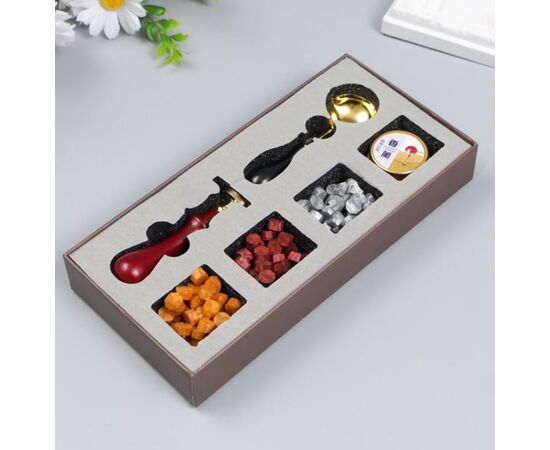 Набор для сургучной печати "Спасибо: печать, ручка, ложка, воск, свеча"