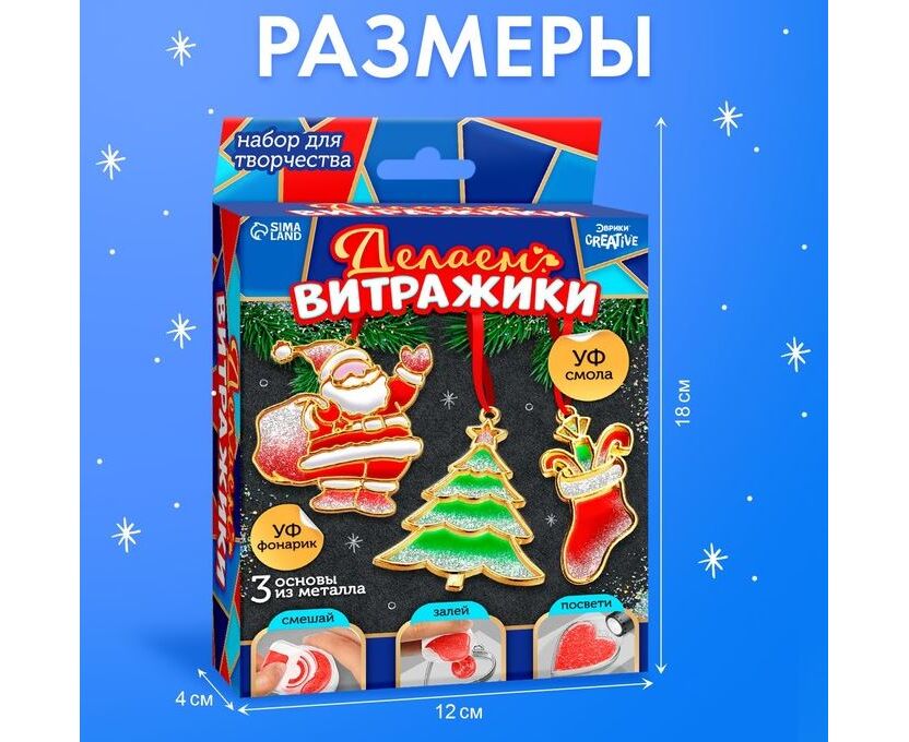Набор для творчества "Делаем новогодние витражи", 3 шт