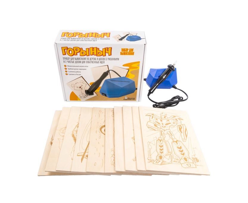 Набор для выжигания по дереву "Горыныч: прибор + 10 досок"