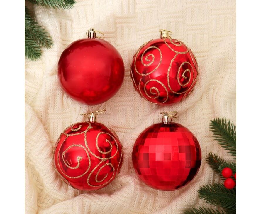 Набор елочных шаров "Чары", цвет красный, d=10 см, 4 шт