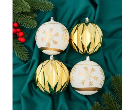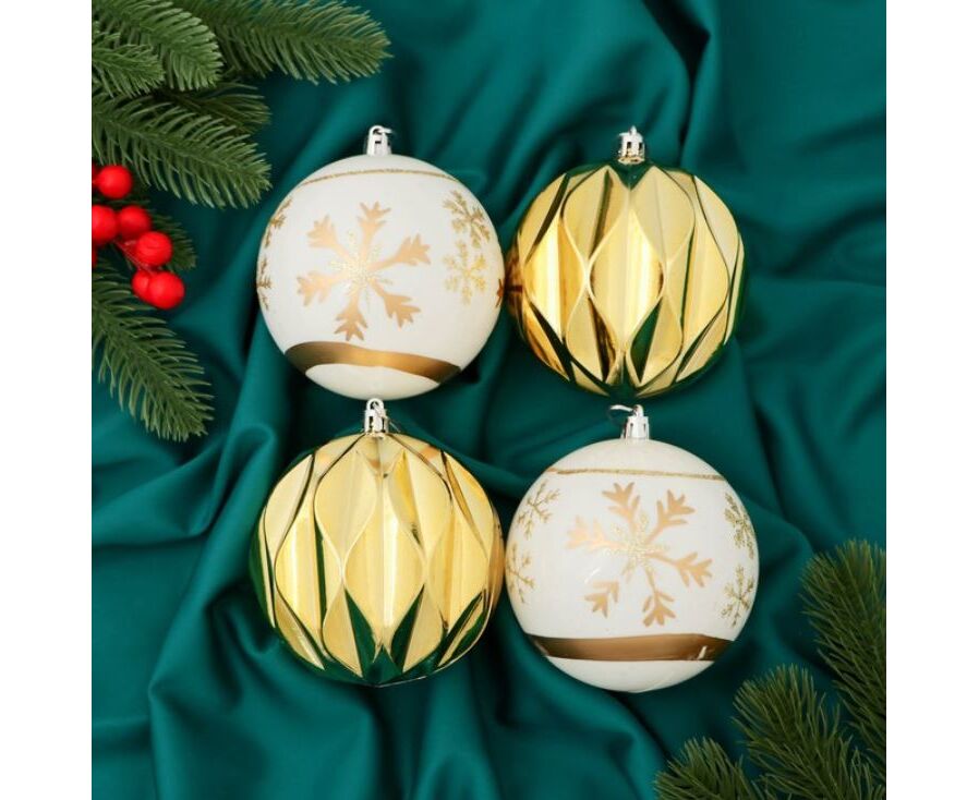 Набор елочных шаров "Праздничные узоры", d=10 см, 4 шт