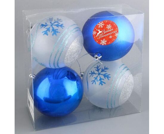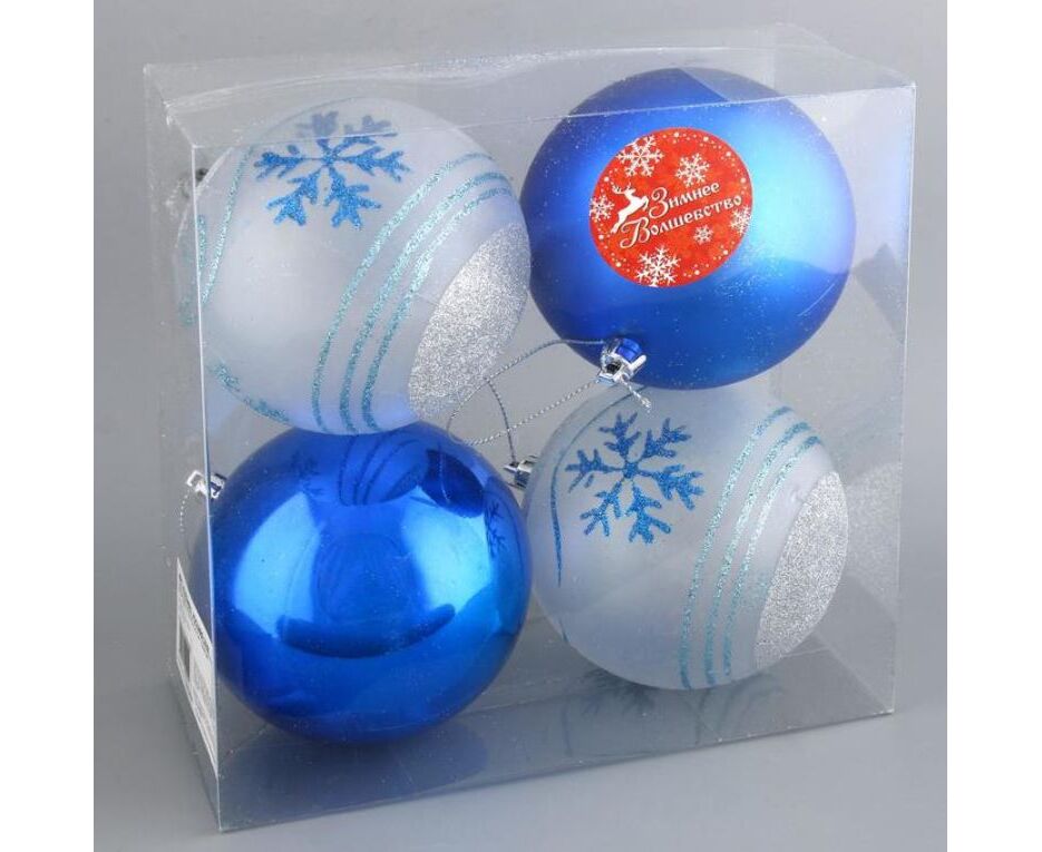 Набор елочных шаров "Снежный вальс", d=10 см, 4 шт
