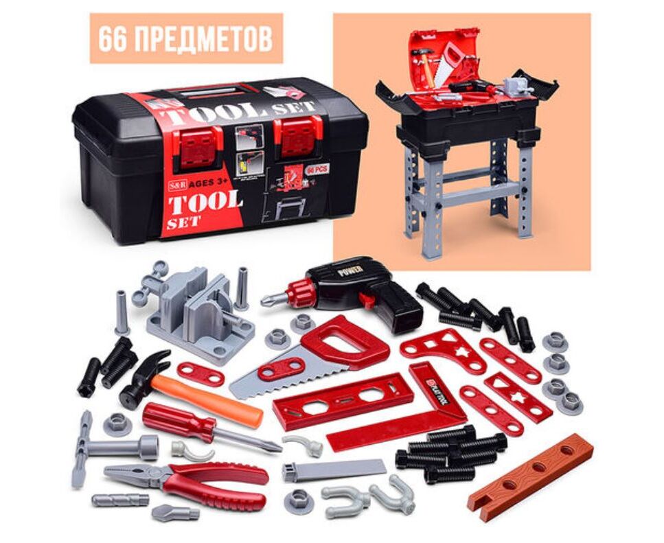 Набор инструментов "Юный строитель с верстаком" в коробке