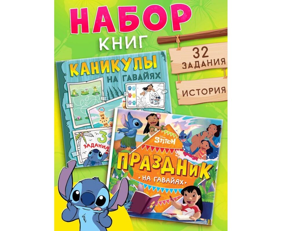 Набор из 2 книг "На Гавайях. Стич", 32 задания + история