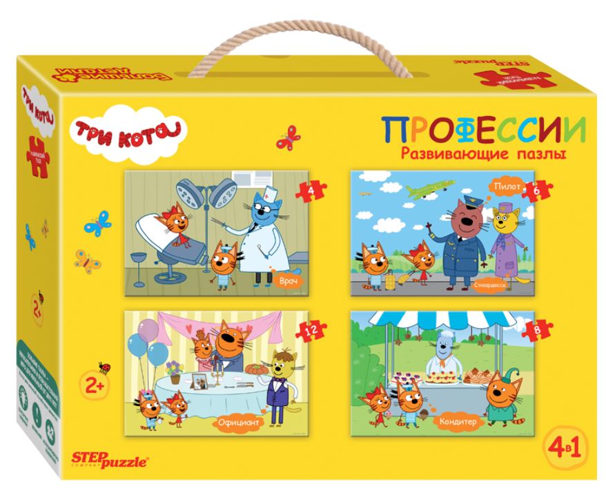Набор крупных пазлов "Три кота": 4, 6, 8 и 12 деталей